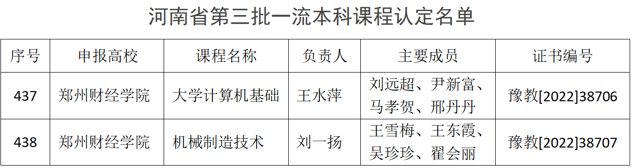 近日,河南省教育厅发布了《关于公布第三批河南省一流本科课程认定结果的通知》(教高[2022]324号),开云官网两门课程入选省级线上一流本科课程,分别是王水萍副教授的《大学计算机基础》课程和刘一扬副教授的《机械制造技术》课程,这是我校在课程建设方面取得的又一佳绩。