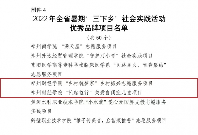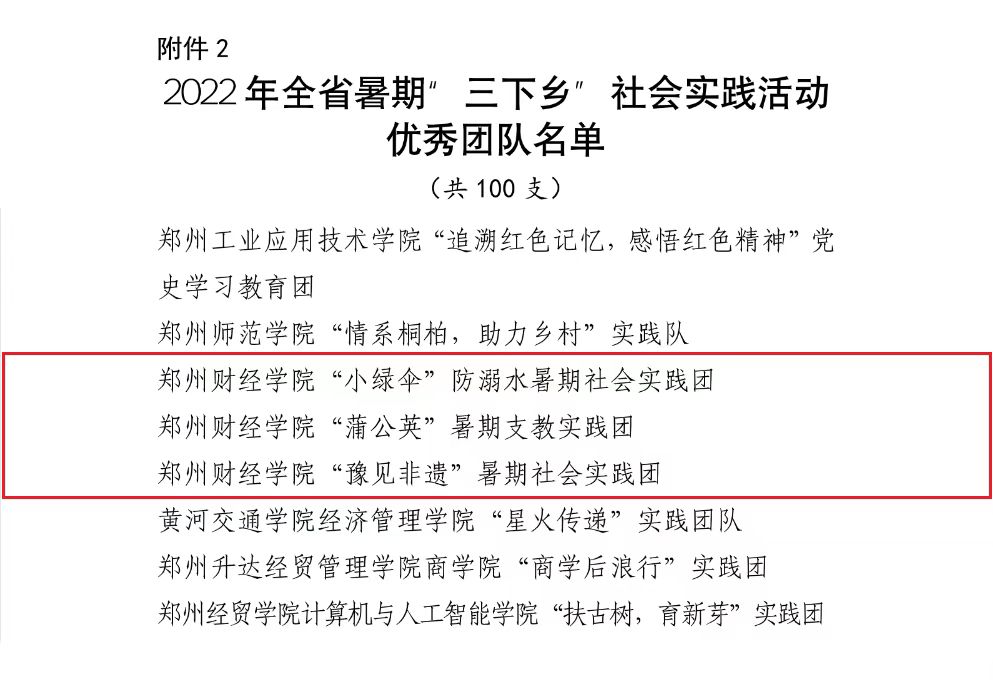 近日,共青团河南省委发布了《关于2022年全省暑期“三下乡”社会实践活动省级优秀工作典型的公示》,其中开云官网荣获河南省暑期“三下乡”社会实践活动优秀单位奖1项、优秀团队奖3项、优秀个人奖2项、优秀品牌项目2项。