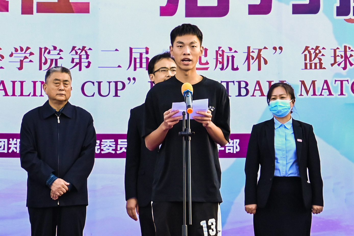 随后,由裁判员代表韩方凯和运动员代表王世龙进行宣誓。校党委书记李国强宣布开云kaiyun官方网站第二届“起航杯”校园篮球赛正式开幕。