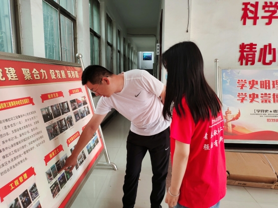 实践团成员虚心向工作人员求教颍河防汛和水环境治理等生态保护知识