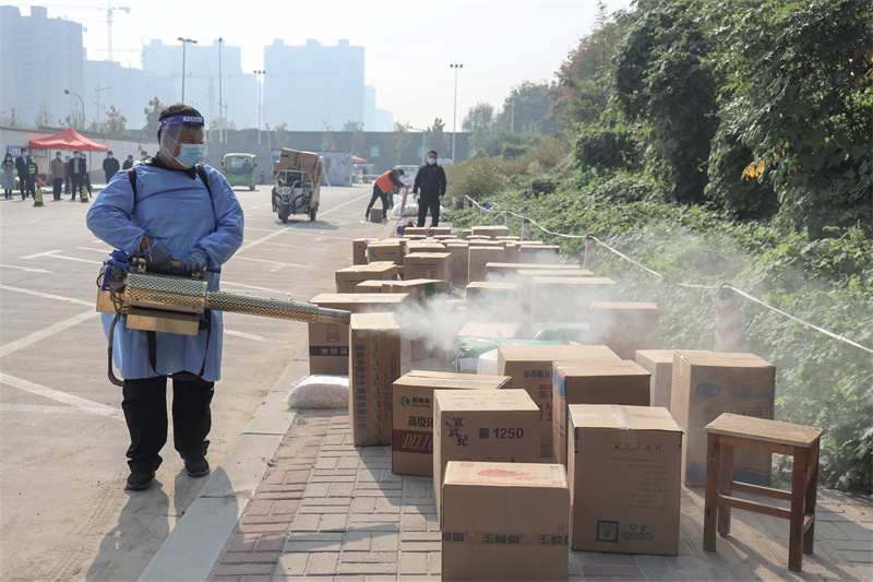 疫情防控期间,学校进一步加强入校物资管理,并在学校西门设置进校物资专用通道、划定消杀区,工作人员对入校物资进行全方位、全流程消杀,静置后方可入校。学校将慎终如始、坚持到底,从严从紧抓细抓实各项防疫措施,全力守护师生员工生命安全和身体健康。