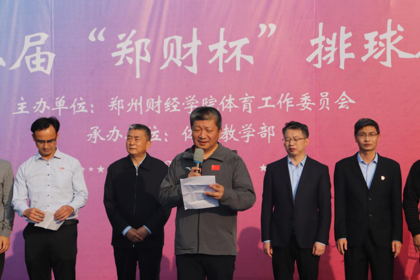 为推动学校阳光体育运动深入开展,丰富校园文化生活,增强学生体质,10月23日下午,由校体育教学部组织的第二届“郑财杯”排球联赛拉开帷幕。校党委书记李国强等校领导,各二级学院有关负责人携参赛队伍参加比赛开幕式。