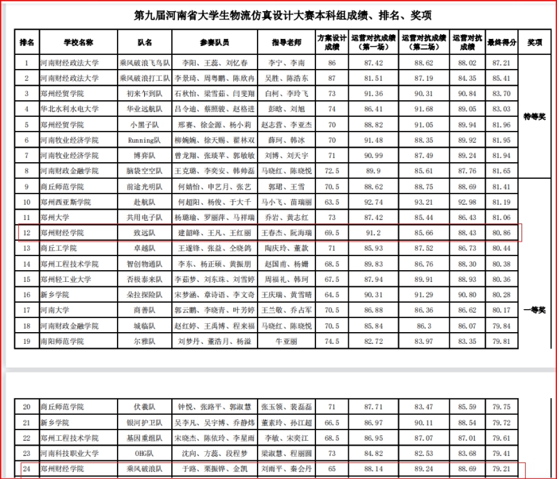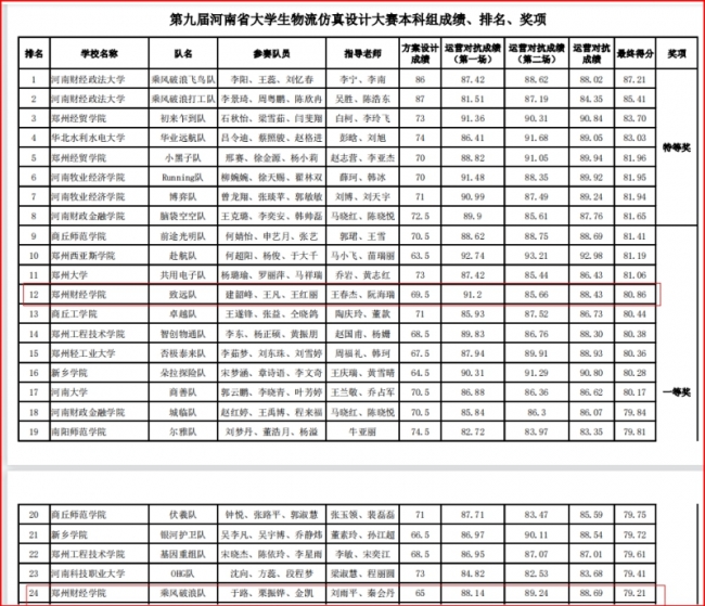 第九届河南省大学生物流仿真设计大赛获奖名单