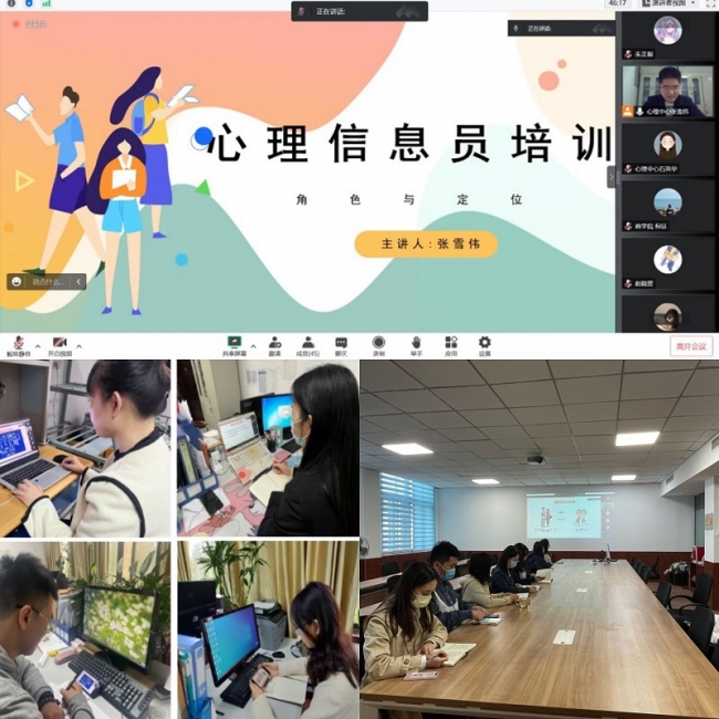 心理信息员是开云官网心理四级工作网络中最基础的一环,为充分发挥其工作网络的基础功能,心理中心开展了心理信息员线上培训,本次培训由心理中心老师张雪伟主讲。通过培训,心理信息员明确了自身的工作职责,进一步提升了心理健康素养,并表示会积极配合班级心理委员宣传普及心理健康知识,增强宿舍同学的心理健康意识和心理自助能力。