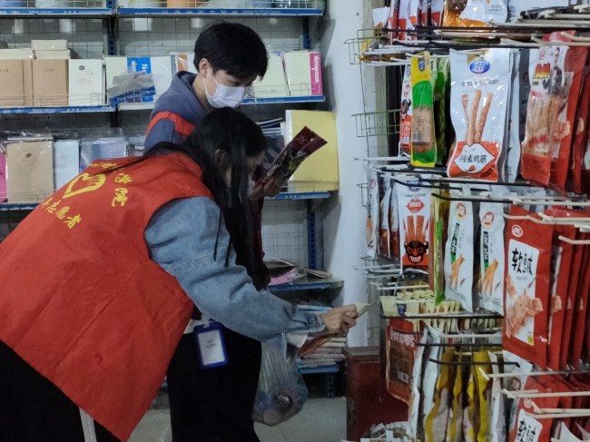调查过程中,学生会成员在刘雨浩老师的带领下,对店铺的食品安全和卫生情况进行了严格检查,并通过抽检调查的方式,针对商品缺斤少两和食物新鲜情况进行重点调查。从检查情况来看,各商户均秉持“诚信经营、服务学生”的原则,在保证自身生产经营情况下,全心全意为师生服务。