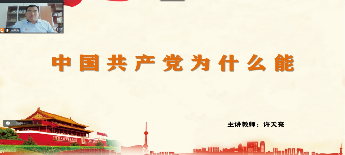 统计与大数据学院党总支书记许天亮以《中国共产党为什么能》为题,解析了中国共产党成功的“密码”。他强调,中国共产党之所以能从小到大、由弱到强,从一叶扁舟到巍巍巨轮,归结起来是因为有科学的理论指导、坚定的理想信念、强大的组织优势、坚实的群众基础、彻底的自我革命。