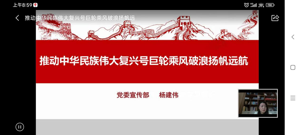 党委宣传部部长杨建伟以《推动中华民族伟大复兴号巨轮乘风破浪扬帆远航》为题,从马克思主义中国化时代化的新境界、新时代新阶段中国共产党的中心任务、推动经济高质量发展、在团结奋斗中实现全体人民共同富裕四个方面,解读了党的二十大报告精神。