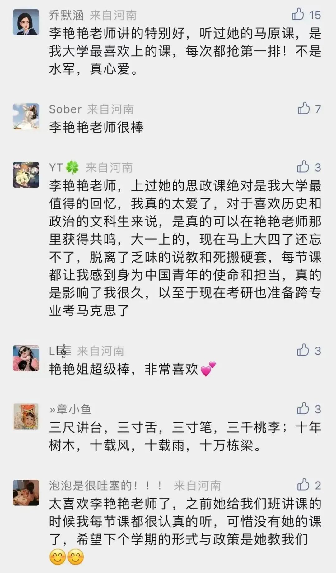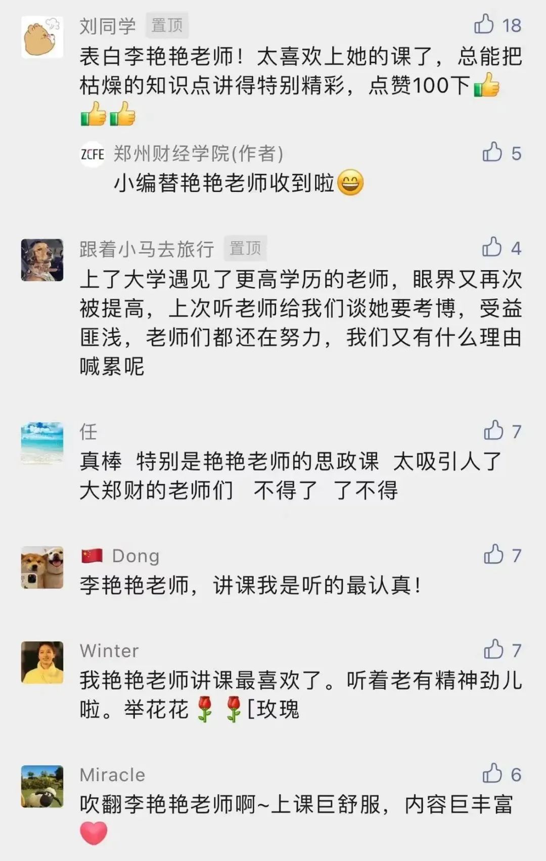 回应学生关切,为学生答疑解惑,努力实现知识传授与价值引领的统一。在广大学生眼里,李艳艳老师讲授的思政课有趣又“有料”,真正讲到了学生的心坎儿上。