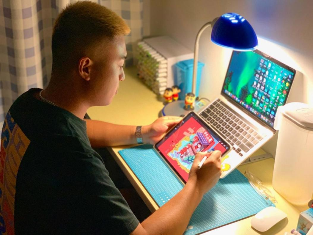 同学眼中的刘逸凡是真正的“文艺青年”,擅长画画、书法、摄影,多才多艺的他经常在朋友圈、QQ空间、抖音等网络平台分享自己的文艺作品。刘逸凡在高中时坚定地选择艺考这条道路,上大学选择环境设计专业,积极参加各级各类艺术设计大赛,先后捧回第十八届“艾尔斯杯”中国手绘艺术设计大赛学生组写生类优秀奖、国际大学生手绘艺术与设计大赛手绘写生类银奖、第四届香港大学生当代设计奖平面设计类银奖和铜奖、新加坡金沙艺术设计大赛平面设计类铜奖和优秀奖等荣誉,这一切,都源于他对艺术的热爱。刘逸凡说:“热爱可抵岁月漫长,艺术已经成为我生活的一部分”。