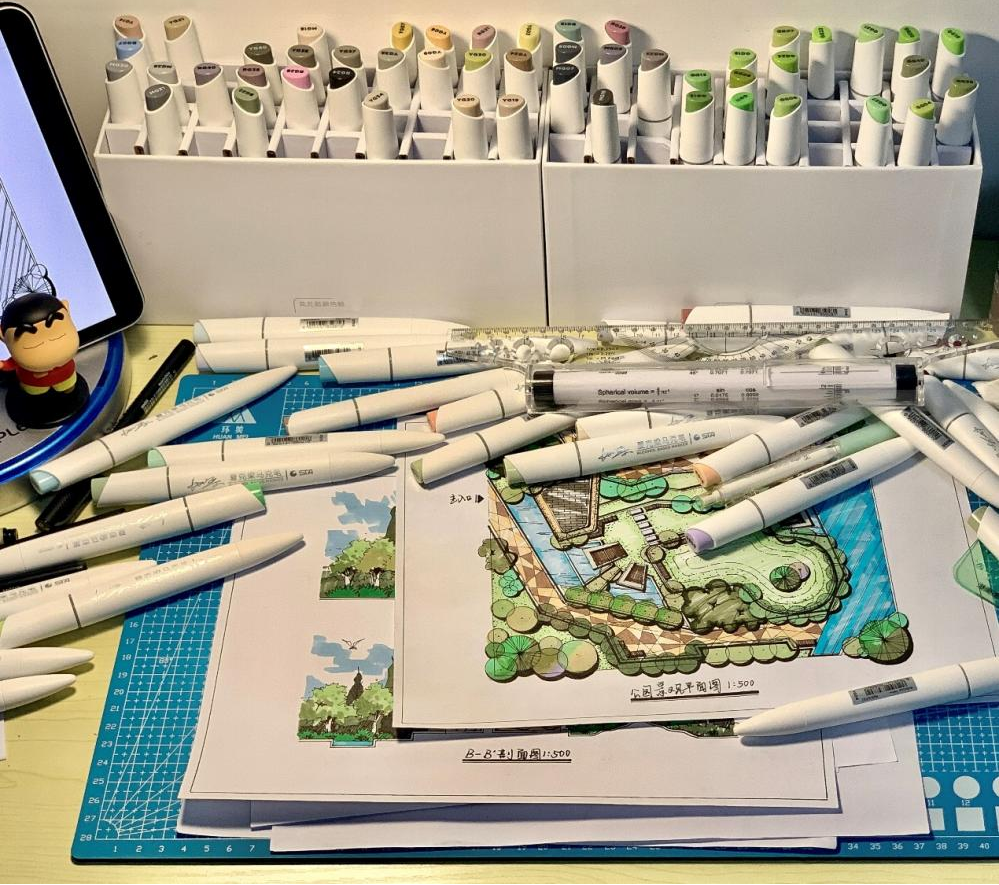 一份份荣誉的背后,是无数张改了又改的图纸。创作的过程并不是一帆风顺的,当内心焦虑或者缺乏灵感的时候,刘逸凡就会看看学界大师的作品或者放空自己,听听音乐,找辅导员谈谈心,在校园里面走走,他说:“参加比赛从未想过放弃,既然做了就要坚持下去,并把它做得越来越好”。