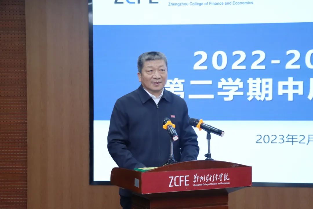理事长牛钦民作重要讲话。他首先对过去一年里全校上下克难攻坚、勇毅前行,广大党员干部实干担当、奋勇争先,统筹推进疫情防控和教育教学并取得优异成绩给予充分肯定。强调了理事会今年的工作重点为全力以赴推进迎评工作,持续深入抓内涵建设,全面提高人才培养质量。并介绍了航空港校区建设情况,对新学期学生心理健康教育、校园食品安全管理、校园安全稳定、学校科研提升行动、教师培养培训、资助学生出国深造等工作作重点要求。希望全体教职员工积极调整精神状态,推动新学期各项工作开好局、起好步,为本科教学工作合格评估交出满意的答卷,全面开启建设高水平应用型本科院校新征程。