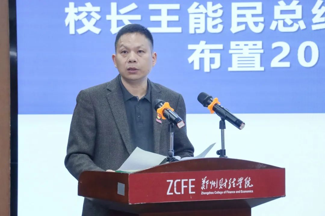 王能民围绕从严从紧,本科教学工作合格评估深入推进;精准高效,疫情防控工作扎实细致;改革创新,教育教学质量稳步提高;引育并举,师资力量持续增强;服务社会,科研创新能力增强;以生为本,学生管理工作精准有效;开放办学,对外合作交流稳步推进;加强内部治理和服务保障,构建幸福平安校园;航空港校区建设进展顺利等方面全面总结2022年度行政工作。并对2023度年行政工作作重点安排,一是强化责任落实,确保平安开学、师生健康。二是做好全面备战,以饱满热情迎接本科教学工作合格评估。三是扎实做好教育教学工作。四是持续推进师资队伍建设。五是提升科研创新和社会服务能力。六是以生为本助力成长。七是提升内部管理和服务保障水平。八是深刻领会,准确把握学校年度工作目标。