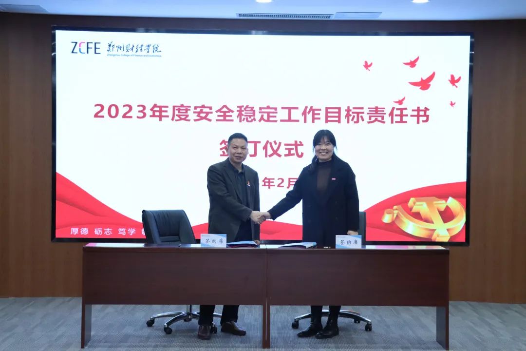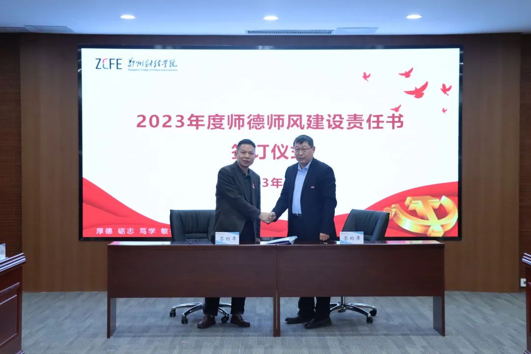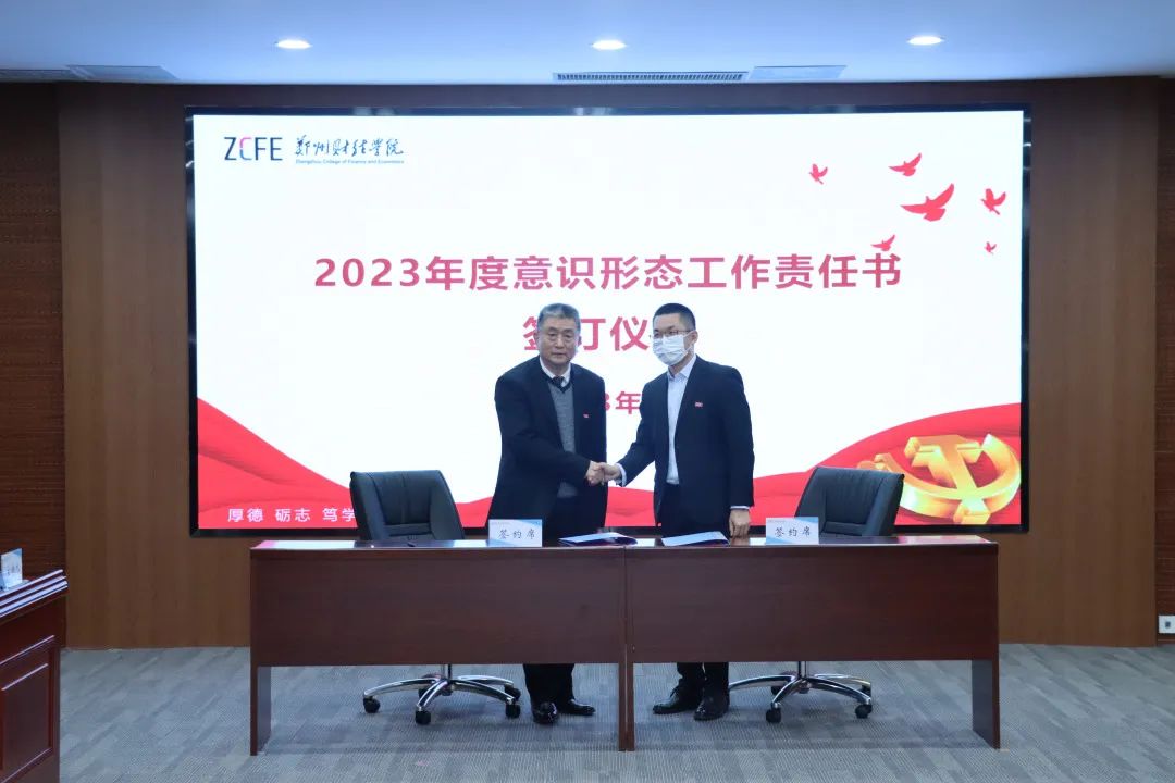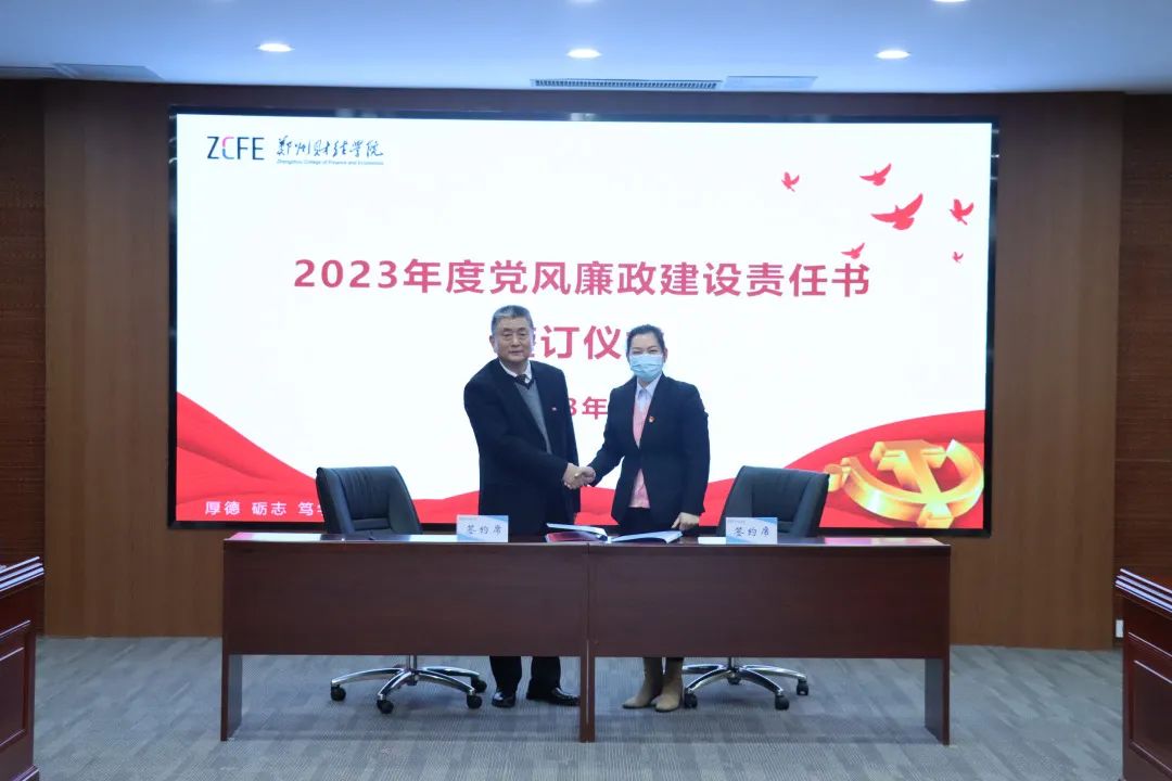 会上,学校各单位负责人代表还分别与校领导李国强、王能民签订学校2023年度意识形态、党风廉政建设、师德师风建设、安全稳定等工作责任书。