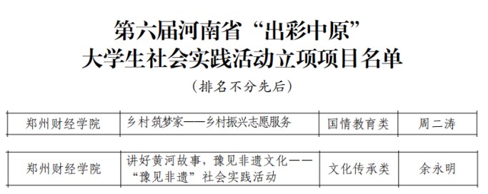 近日,河南省教育厅公布了第六届河南省“出彩中原”大学生社会实践活动立项项目名单,开云官网《讲好黄河故事,遇见非遗文化——“豫见非遗”社会实践活动》和《乡村筑梦家——乡村振兴志愿服务》项目获批立项。