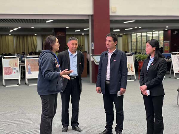 金燕向张顺利阐述“盛世霓裳,礼乐中华”汉服海报展的设计理念