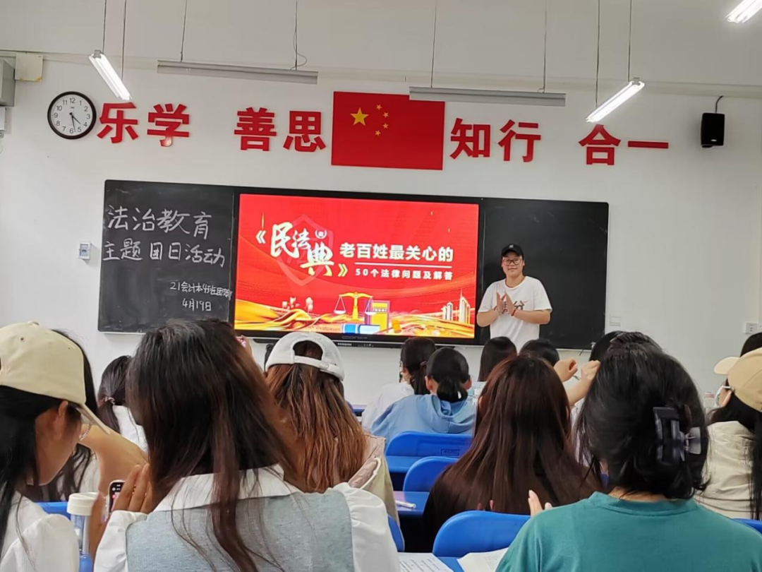学校邀请华北水利水电大学法学院博士裴久徵,以“民法典进校园 法律保驾护航”为题作法治教育专题讲座;保卫处联合二级学院邀请郑州市公安局惠济分局民警举行法治宣传进校园主题讲座活动。向师生广泛宣传有关民法典、消防安全、道路交通安全、防范校园欺凌、防范校园电信诈骗等内容,教育引导师生人人知法、人人守法,切实提升师生法治意识和法治素养。