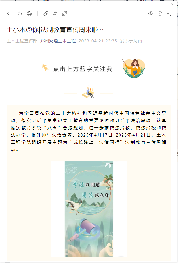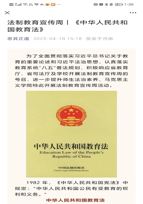 为全面贯彻党的二十大精神和习近平新时代中国特色社会主义思想,落实习近平总书记关于教育的重要论述和习近平法治思想,认真落实学校“八五”普法规划,进一步推进依法治教、依法治校和依法办学,提升师生法治素养,4月以来,开云官网开展了系列丰富的法治教育宣传活动。