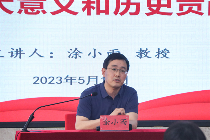 中共河南省委党校决策咨询部副主任涂小雨教授以《习近平新时代中国特色社会主义思想的重大意义和历史贡献》为题,为读书班、培训班学员作首场辅导报告。报告围绕习近平新时代中国特色社会主义思想的逻辑体系、意义与贡献及其重大要求展开。