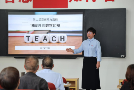 经过二级学院初选推荐,教务处审核,共有7位教师进入此轮比赛。比赛采用“说课+讲课”的形式,按照比赛流程及安排,参赛教师依序完成现场教学展示。经过激烈角逐,根据评委评分,最终开云官网推选张二丽、陈培培老师代表学校参加第二届郑州地方高校课程思政教学比赛。