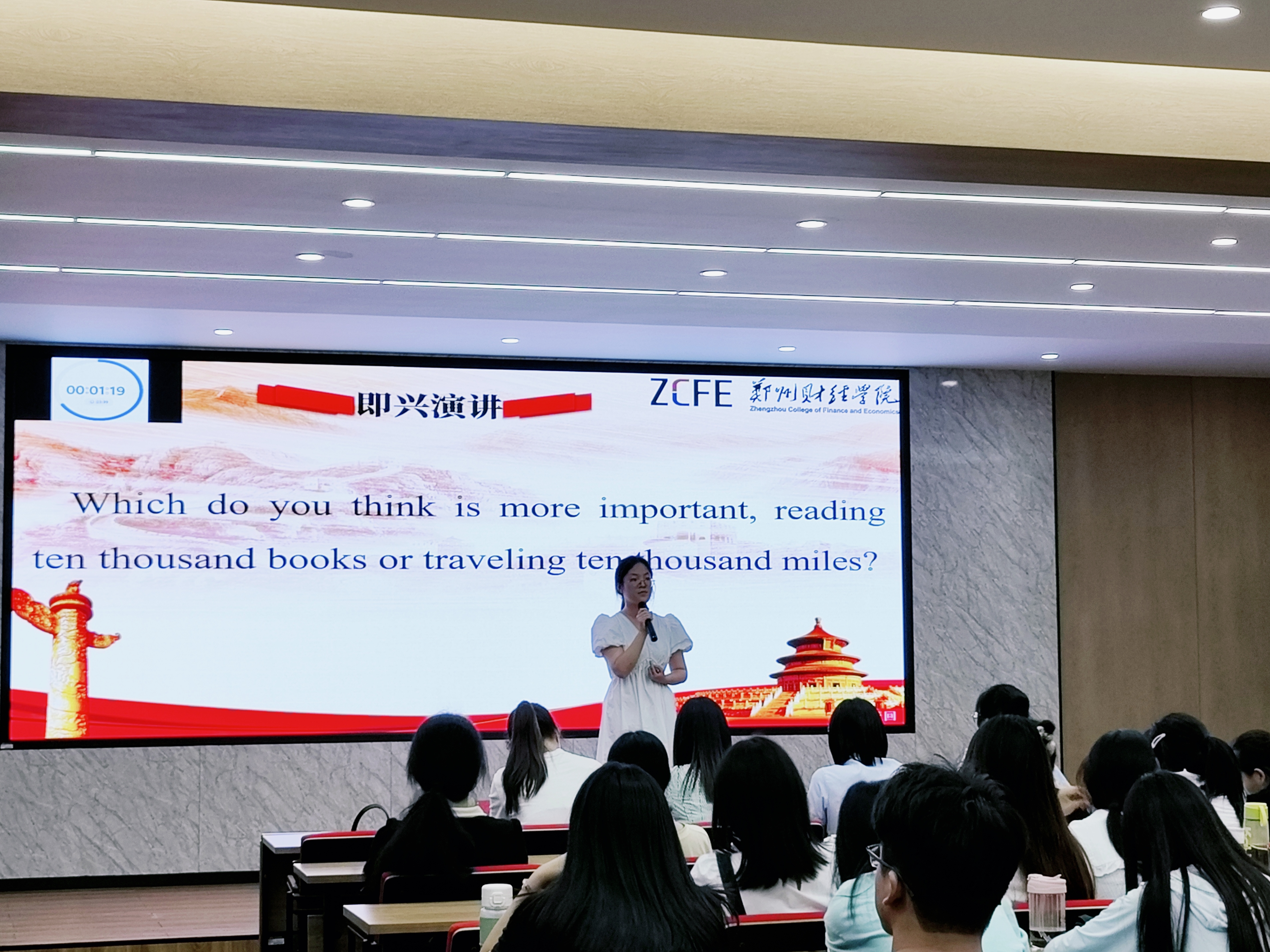 经过校级初赛、复赛的选拔,10位选手脱颖而出,晋级决赛。本次比赛分为定题演讲、现场问答、即兴演讲三个环节,选手们围绕大赛主题“The Chinese Path to Modernization”,从政治、经济、生态环境、教育等多个角度表达了对中国式现代化的不同见解。