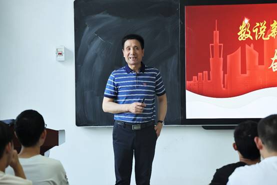 张顺利副校长以“数说新时代 奋进新征程”为主题,结合学生实际情况,运用灵活的课堂教学方式,在交流与互动中引导学生感悟新时代十年来的伟大成就和变革。他围绕“鲜明宣示主题”“准确把握方位”“科学设定目标”“全面部署任务”四个方面,对党的二十大精神进行深入阐释与解读,以精辟的论述、丰富的事例、生动的语言、热情的互动,为同学们解读呈现了中华民族伟大复兴的宏伟蓝图,同时将党的二十大精神融入课堂教学,推动党的创新理论入脑入心,为学生带来了一次思想深邃、内容丰富的精神大餐。