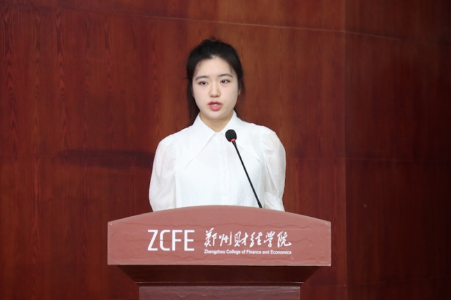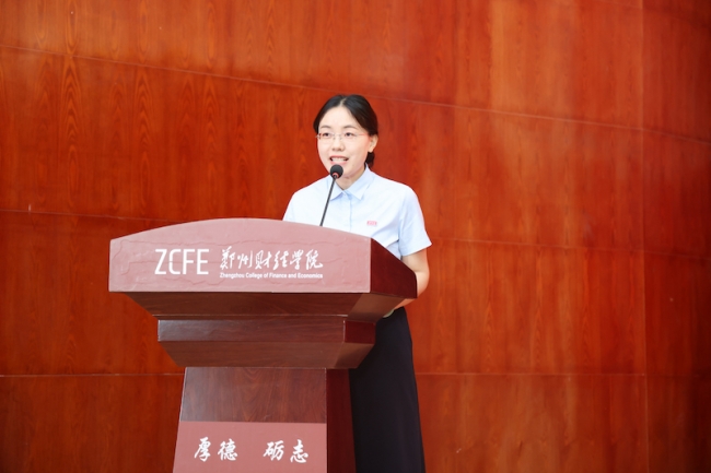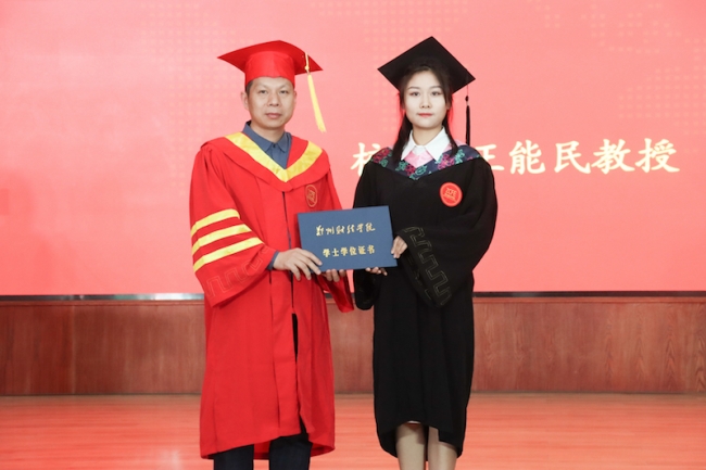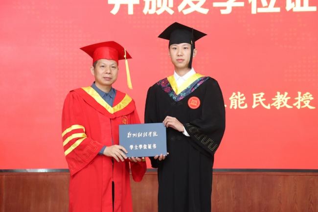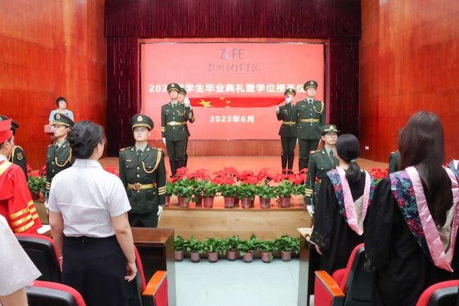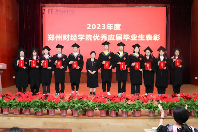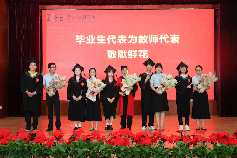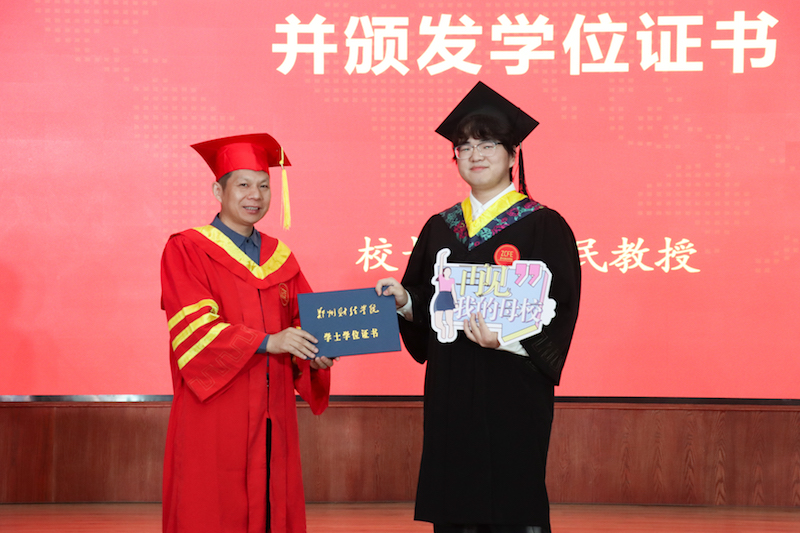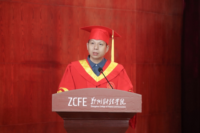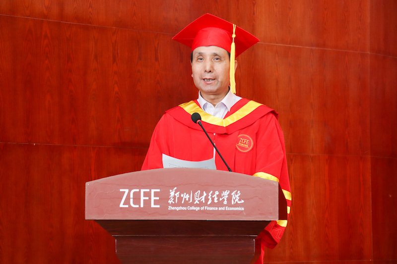 副校长张顺利宣读《开云kaiyun官方网站关于授予曹颖等4241名同学学士学位的决定》(郑财院发〔2023〕57号),并向他们表示祝贺。