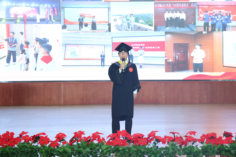 在校生代表会计学院2020级财务管理本科2班轩寒冰同学发言。她向全体毕业生送上真挚的祝福,并代表在校生对即将毕业的学长学姐们一直以来的关心、爱护、帮助和支持表示衷心的感谢,同时祝学长学姐们在未来的日子里能勇往直前去追求平凡中的卓越,扬帆起航去创造平静中的升华,用自身魅力去实践青春无悔的诺言。