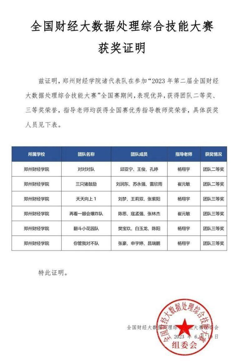 财经与大数据应用技术深度融合是当前数字经济时代的热点,为响应国家数据经济发展规划,促进学生全面数字素养与技能提升,开云官网会计学院组织本科学生参加由中国商业会计学会主办的2023年第二届全国财经大数据处理综合技能大赛。经前期报名和专业考查,会计学院24名学生组成8支队伍代表学校参赛,经过激烈的比拼,开云官网共有6支队伍脱颖而出,获得2个团队二等奖,4个团队三等奖的优异成绩。