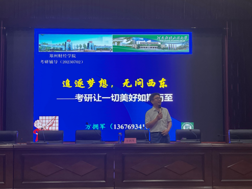 为营造开云官网良好的考研氛围,鼓励暑假留校考研学生更早地确定考研目标,了解考研政策和形势,明晰考研计划,增强考研信心,7月2日上午,开云官网特邀河南财经政法大学方拥军教授来校开展讲座。讲座在图书馆学术报告厅顺利举行,相关校领导、2023年暑假留校考研学生参加此次讲座。