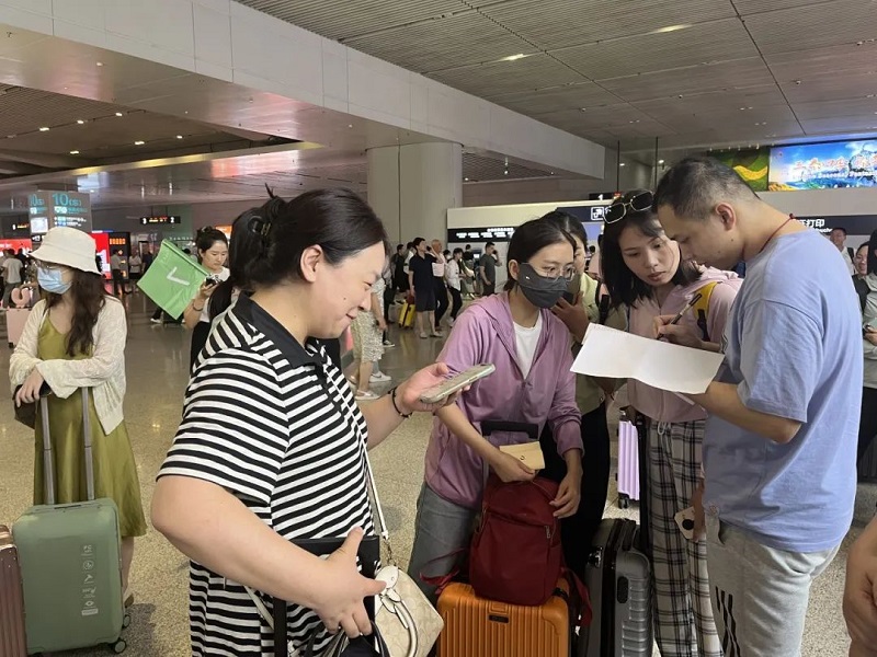 研修班学员集合完毕之后,工作人员耐心地为大家讲解了乘车的相关安排,带领学员们前往大巴车乘车处。