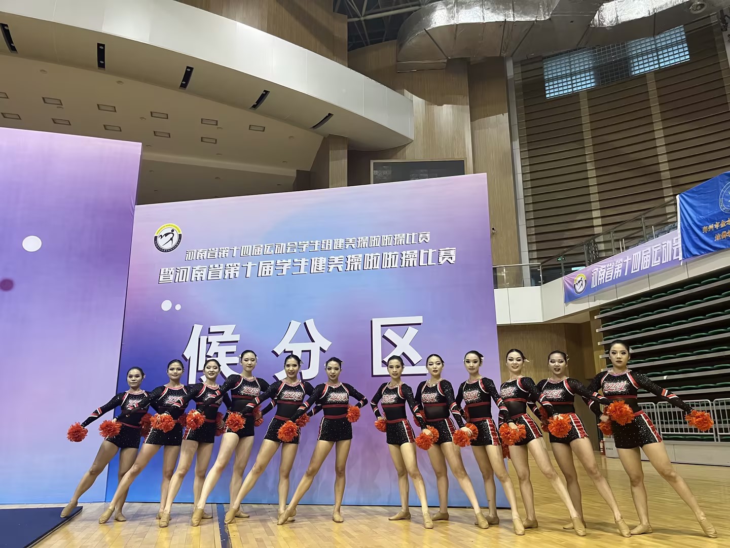 近日,我校校队参加河南省第十四届运动会学生组系列赛事,在武术、健美操和啦啦操、排舞、跆拳道等项目竞赛中奋力拼搏,并取得优异成绩。