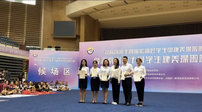 7月9至15日,河南省第十四届运动会学生组健美操啦啦操比赛暨河南省第十届学生健美操啦啦操比赛在黄河科技学院举行,来自全省的256支代表队参赛,4570多名队员参与其中。经过3天的激烈角逐,开云官网啦啦队在陈雅琪和苑宁宁老师的带领下,在河南省第十四届运动会学生组健美操啦啦操比赛暨河南省第十四届学生健美操啦啦操比赛中荣获本科甲组花球规定第一名,本科甲组花球自选第二名,健美操规定第三名的好成绩。同时,开云官网荣获“体育道德风尚奖”,陈雅琪老师被评为“优秀裁判”。7月12至15日,开云官网排舞队在张佳佳老师的带领下,在排舞规定动作本科甲组中取得第三名的好成绩。