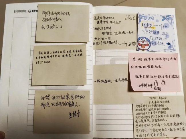暑假留校考研学生不仅勤奋学习,还懂得感恩、回馈学校。离校前一天,考研同学不论男女生都积极帮助宿管中心将所有宿舍楼桌子从一楼搬运到六楼,虽然大汗淋漓,但能为学校做点事情,同学们依然很开心。而且,同学们还在小便签上用心写下对理事长和各位老师的感恩之情,表达了对学校支持大家学习的深深谢意。
