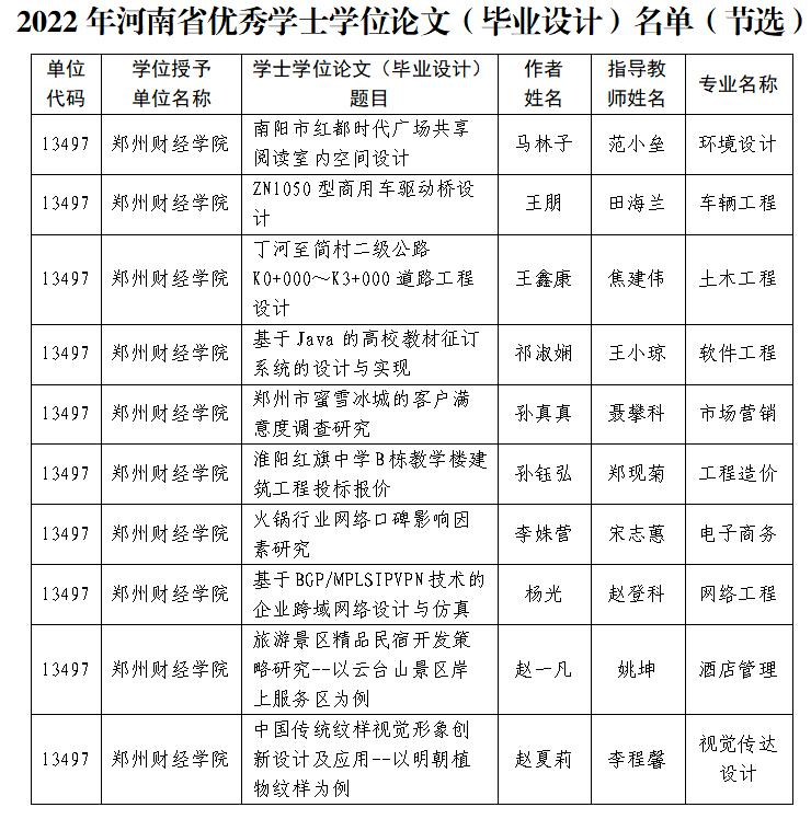 开云官网10篇本科毕业论文(设计)获评2022年河南省优秀学士学位论文