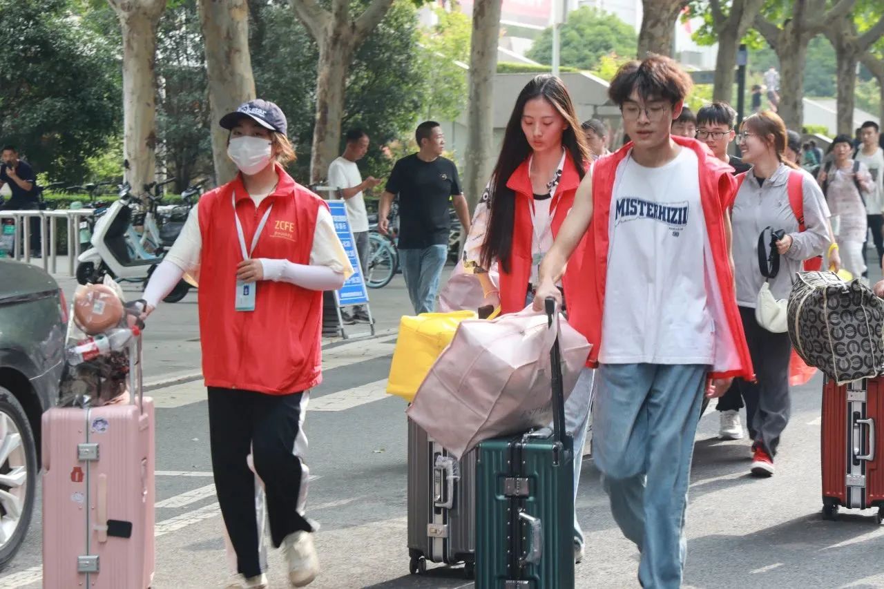 学院领导和辅导员们对新生以及家长的到来表示热烈欢迎,志愿者们热情地接待2023级小萌新们和陪同的家长,为新生指引路线、帮助其报名登记、搬运行李;耐心地为新生和家长答疑解惑,叮嘱入校后的注意事宜,引领新生办理宿舍入住,实现各环节无缝对接。按下快门,为新生拍下他们与郑财的第一张照片,留下难忘的青春印记。