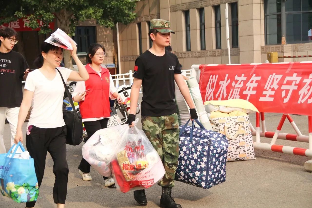后勤保卫部门维持现场秩序,及时疏通拥堵道路,帮助新生搬运行李,竭尽全力保卫新生平安报到。