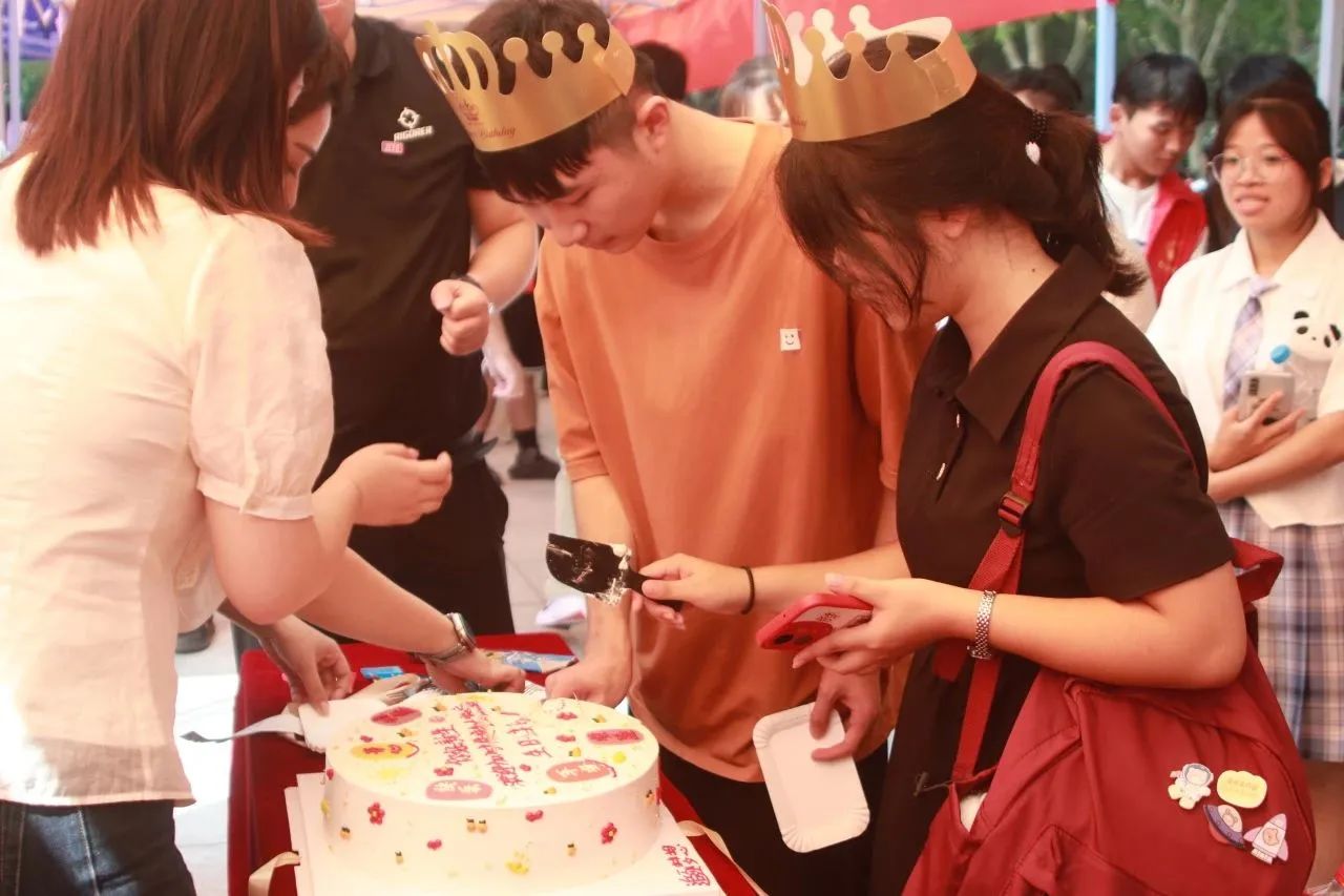 学院辅导员为报到当天生日的两名同学准备了生日蛋糕,在场师生和志愿者们共同为新生唱生日祝福歌,让新加入到文传这个大家庭的学生感受到家的温暖,使同学们迅速破冰,更好融入到大学生活中来。