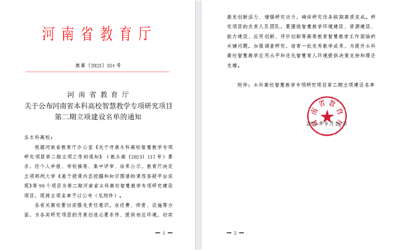 开云官网获批河南省第二期本科高校智慧教学专项研究项目