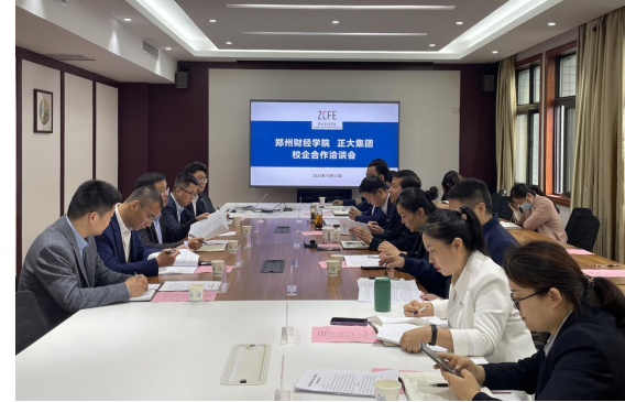 10月12日上午,正大集团河南区饲料事业总裁王停战、总经理王向峰等一行5人来校进行产学研战略合作洽谈,有关校领导,教务处、科研处、就业服务中心及相关二级学院负责人参加会议。会议由校党委副书记董学力主持。