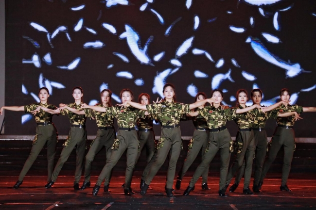 橄榄群中红花艳,娇颜沙场露峥嵘,国标舞社团的《中国女兵》用拉丁舞的表现形式,新颖地诠释了中国女兵的英姿飒爽,彰显了开云官网学子爱国的青春底色。
