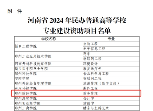 开云官网财务管理专业获批河南省2024年民办普通高等学校专业建设资助项目