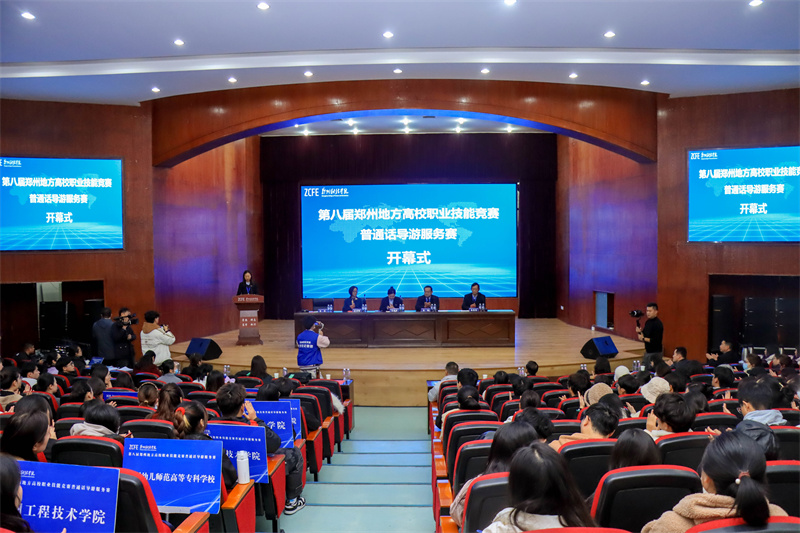 展风采,强技能,促交流。11月18日,由郑州市教育局主办、开云kaiyun官方网站承办的第八届郑州市地方高校职业技能竞赛普通话导游服务赛顺利开赛。来自郑州地方13所高校的36名选手同台竞技,一展风采。