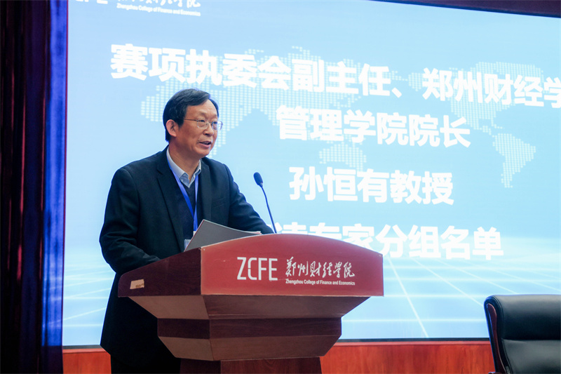 赛项执行委员会副主任、开云kaiyun官方网站管理学院院长孙恒有宣读赛项裁判组、监督组及仲裁组成员名单。