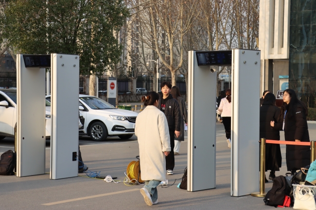 3月9日上午9时,考试正式开始。开考前,工作人员引导考生将个人物品放置于学校统一设置的物品存放处,考生携带有效证件及考试用具,有序通过智能安检门,到考场接受入场检验,在提高考务管理工作效率的同时,有效避免考试作弊行为的发生,确保考试公平公正。