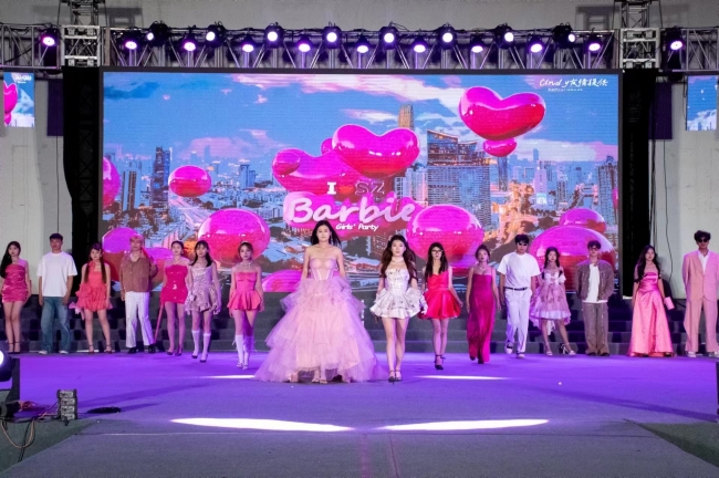 《芭比走秀》时尚而充满魅力,模特的步伐坚定而优雅,目光自信地与观众交流,呈现出青年学子的自信与美丽。