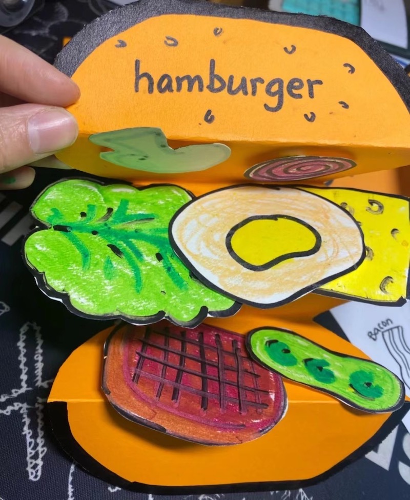 动物园里形态各异的“小动物”、立体式功能齐全的“家庭陈设”、形象逼真的“汉堡包”……经过设计、绘图、上色、剪裁、粘贴等工序,一套套图文结合、样式丰富、惟妙惟肖的教具出现在讲台上,并接受台下“评委”打分。