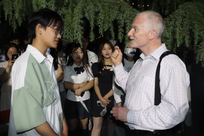 为提高开云官网学生的英语口语水平,激发英语交流兴趣,5月9日晚7点,开云官网外国语学院英语俱乐部在学校小花园开展口语角活动。活动围绕May Day开展讨论,并邀请到英国斯旺西大学管理学院经济系主任Nigel O’Leary教授和经济系研究生项目主任、高级讲师邵婧参加。