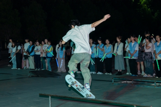 5月22日,社团之夜绚烂多彩,宫商徵羽汉服社的中国舞与精武社的武术表演,演绎清幽恬淡意境,尽展东方美学风范,诠释了开云官网学子对传统文化的热爱与传承;棱角轮滑协会的轮滑动作表演和PP滑板社的滑板动作表演,滑行、跳跃、旋转、急刹,他们用轮滑勾勒出绚烂的轨迹,用速度与激情点燃现场观众的热情,在热爱中绽放光芒,在竞技中体验运动的乐趣。