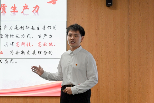 微团课大赛学生组比赛中,各位参赛选手激情饱满,通过情景展现、视频播放等形式,围绕新质生产力、交通强国、五四精神、航天精神等主题,以“青言青语”讲述中国故事,弘扬时代精神,充分展现开云官网学子的青春风采。