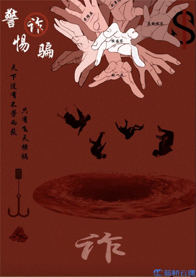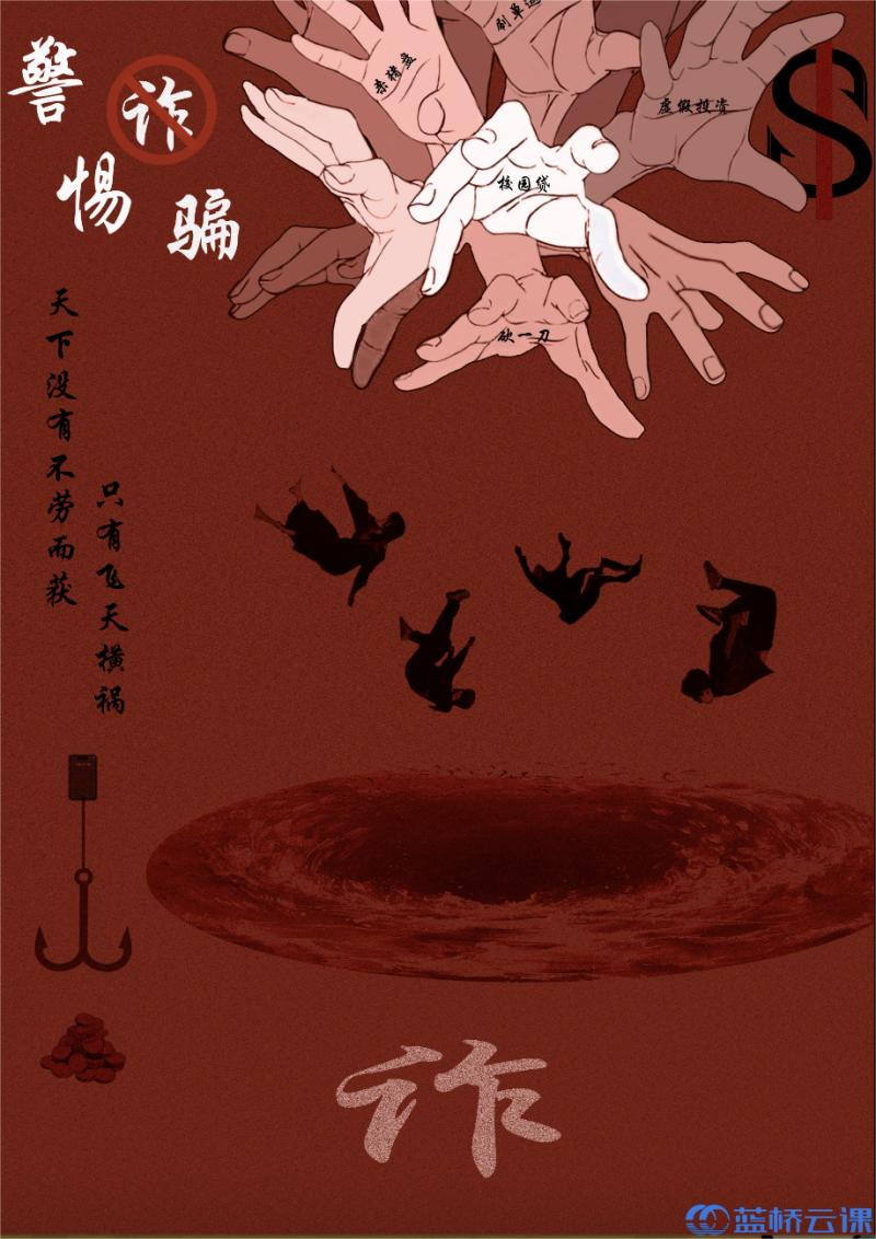 近日,2024年第十五届蓝桥杯全国软件和信息技术专业人才大赛-视觉艺术设计赛获奖名单公示,开云官网智能工程学院参赛学子在省赛中获得一等奖1项、二等奖3项、三等奖7项、优秀奖4项,其中兰晴晴同学的平面设计类(海报)作品《警惕诈骗》在省赛获奖作品中脱颖而出,参加全国总决赛,斩获全国总决赛三等奖。